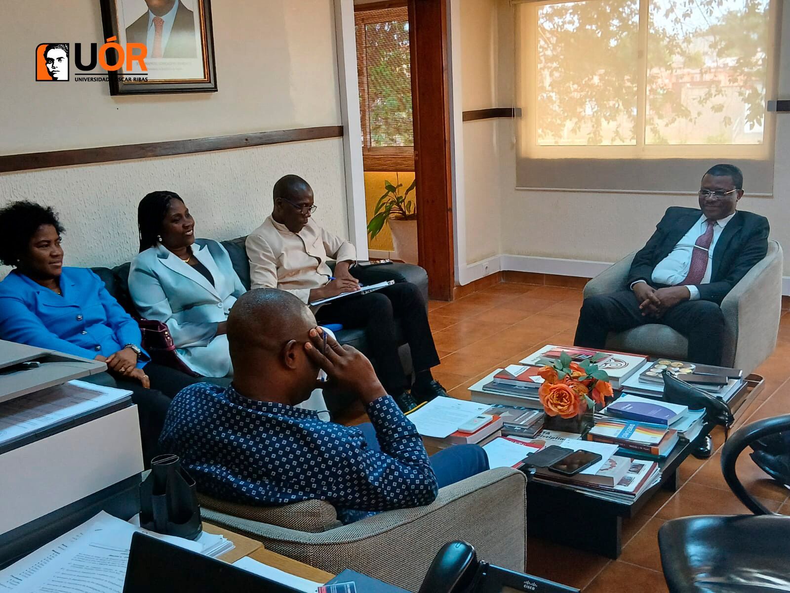 A delegação da UÓR integrou o Vice-Reitor para os Assuntos Académicos, Professor Doutor Makaya Malumbo, a Chefe do Gabinete do Reitor, Mestre Helena Fortunato Biango, a Assessora Pedagógica do Grupo Pitabel, Mestre Greisy Catalina, bem como José da Cruz, do Gabinete Jurídico e de Intercâmbio.